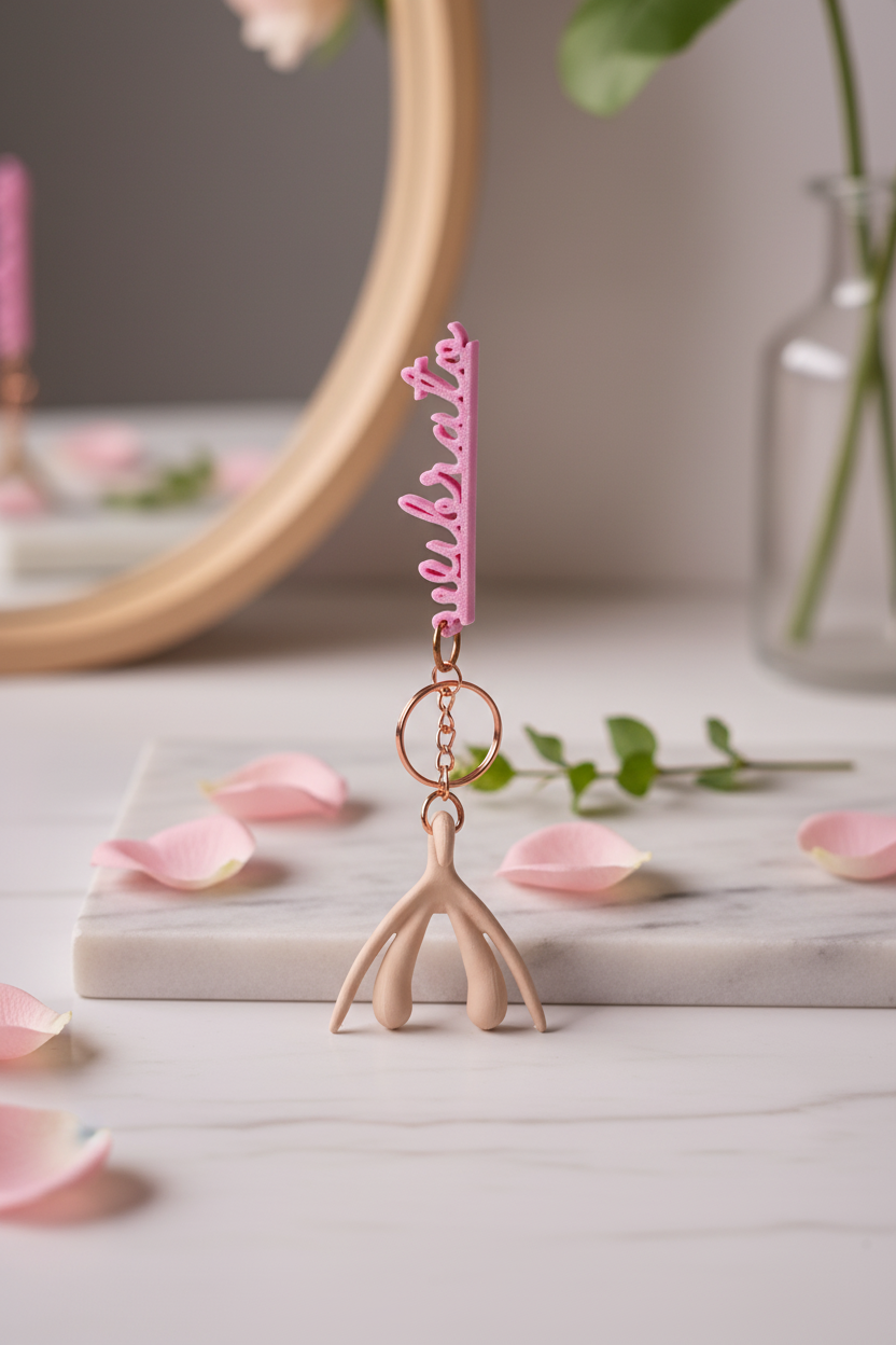 Wysoka Jakość Wykończenia: Solidne metalowe kółko w kolorze różowego złota zapewnia bezpieczeństwo Twoim kluczom, a precyzyjny druk 3D oddaje każdy detal anatomiczny.