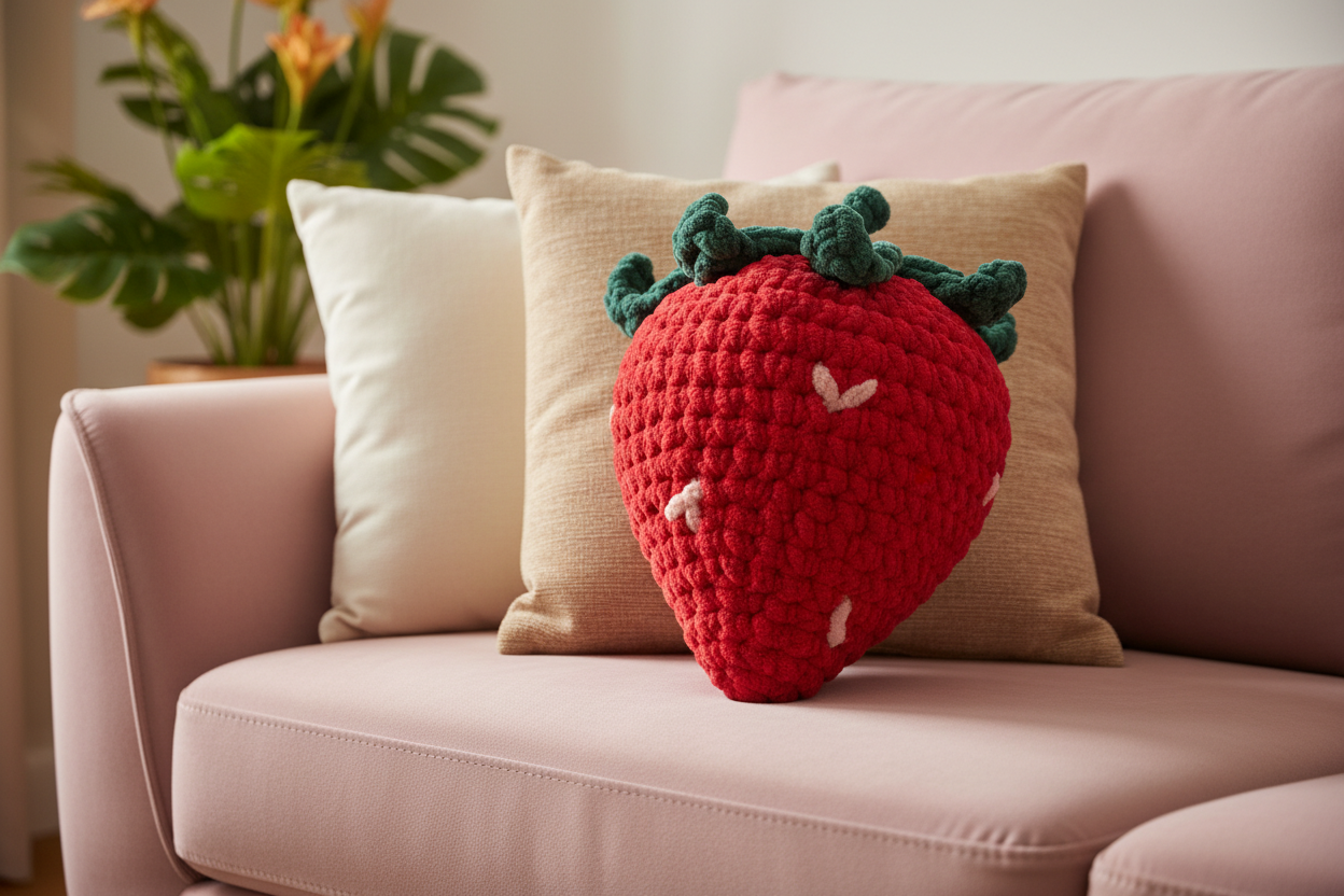 Pluszowa Truskawka XL Handmade – Miękka Poduszka Dekoracyjna od Wibrato