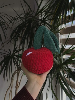 Odkryj potęgę miękkości w rozmiarze maxi! Pluszowa Wiśnia XL od Wibrato x Co włóczysz to nie tylko ozdoba, to prawdziwe arcydzieło rzemiosła, które dumnie mierzy 30 cm wysokości. Ta gigantyczna, ręcznie szydełkowana wiśnia została stworzona, by wnosić do Twojego wnętrza radosną energię, zmysłowość i niezrównany komfort. Idealna jako unikalna poduszka dekoracyjna, towarzyszka relaksu lub stylowy manifest Twojego charakteru.