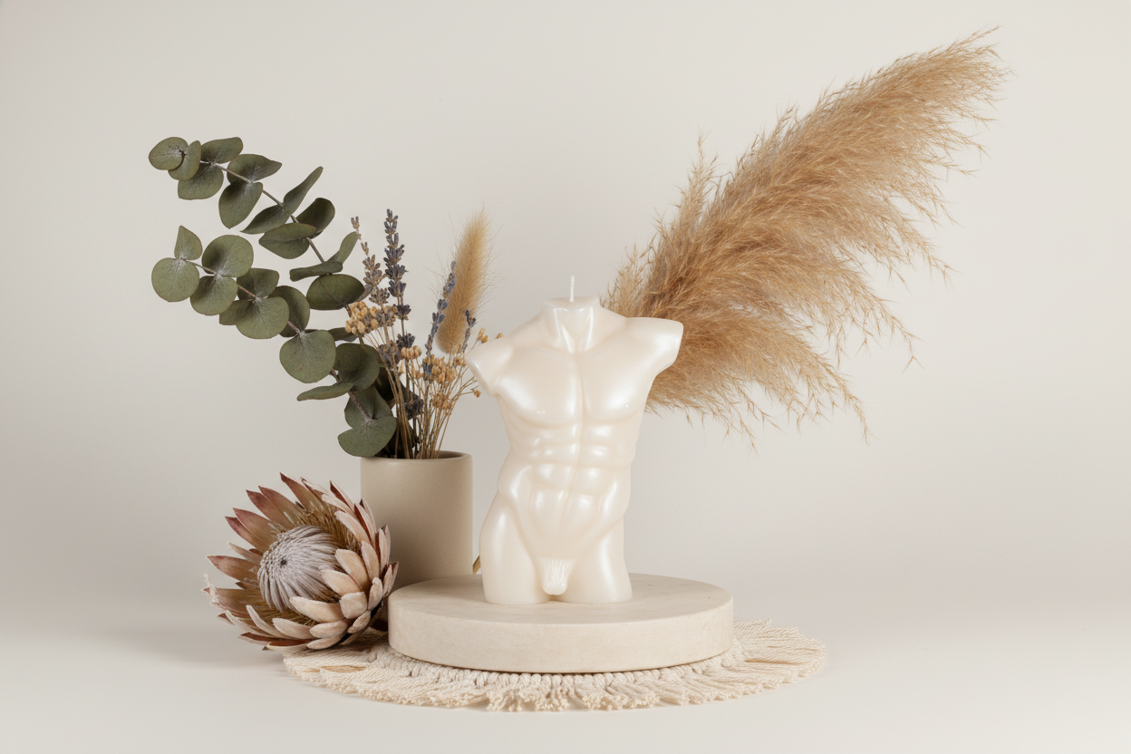 Męski tors to ponadczasowy motyw w sztuce. Jako świeca dekoracyjna idealnie sprawdzi się jako wyjątkowy prezent dla osób ceniących estetykę body positive, rzemiosło handmade oraz nowoczesny wystrój wnętrz. Każda sztuka jest odlewana ręcznie, co gwarantuje unikalność Twojego egzemplarza.